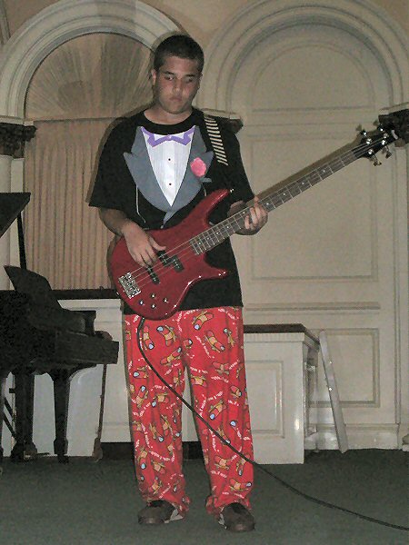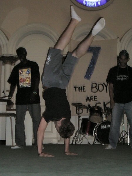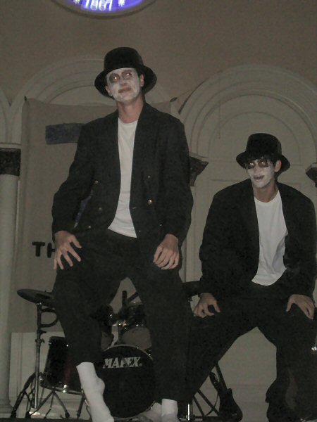 trash). Andy came out onto stage and began tossing crumbled pieces of