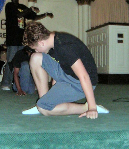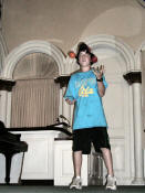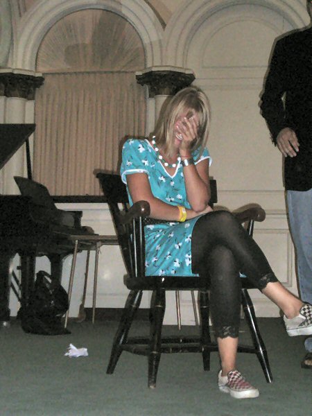paper on the ground. Teri, from the audience, screamed at him and ran