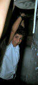 ready in the morning, he drops his sweater in the sink, then gets doused