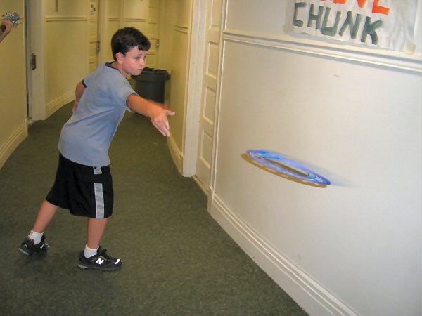 And for those who simply cannot seem to stay in one place, the curved hallways make a great obstacle for throwing a frisbee (this one of cloth), or whatever can be found. |