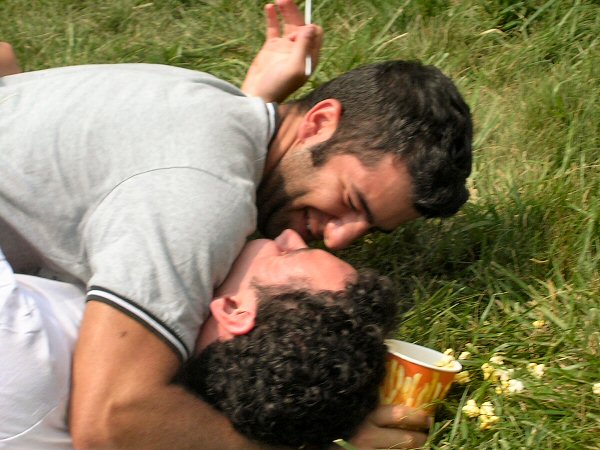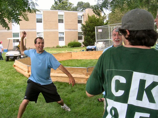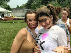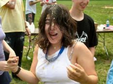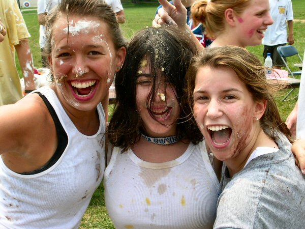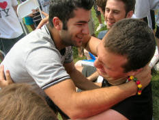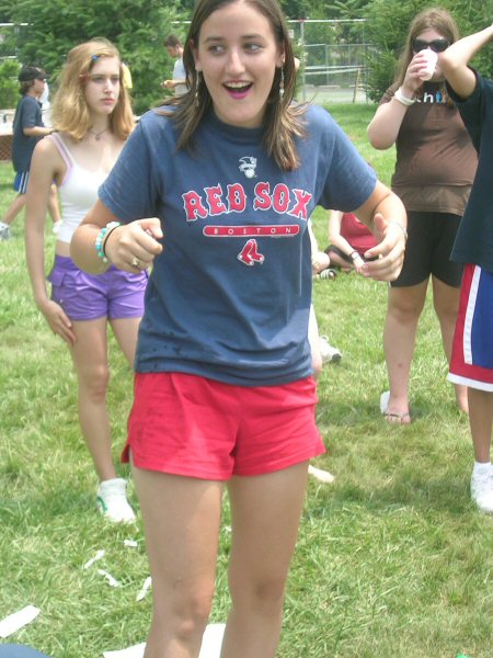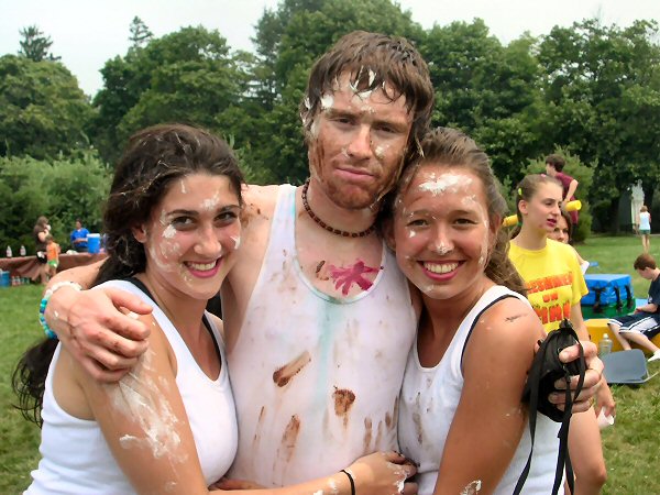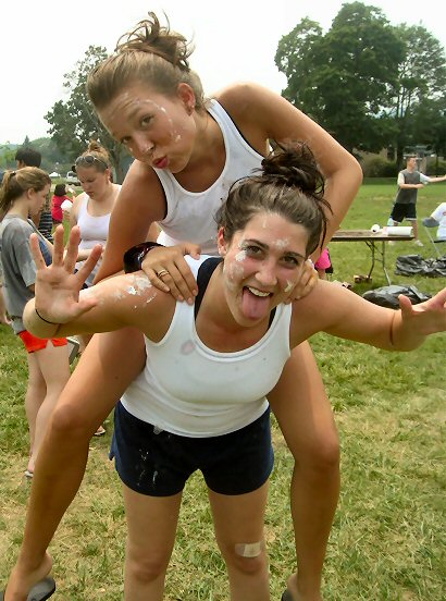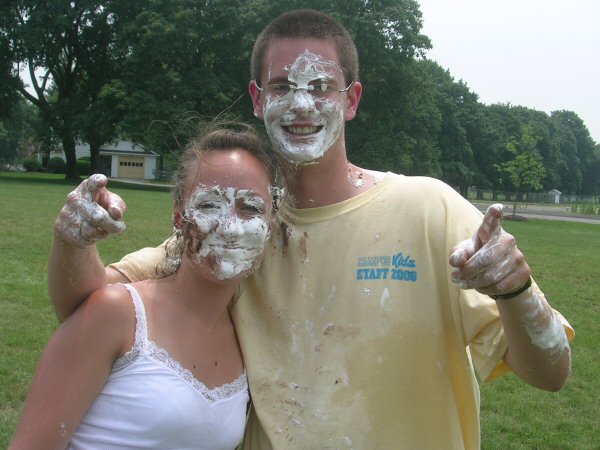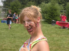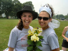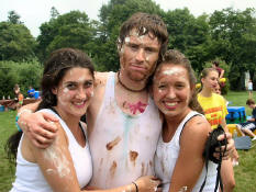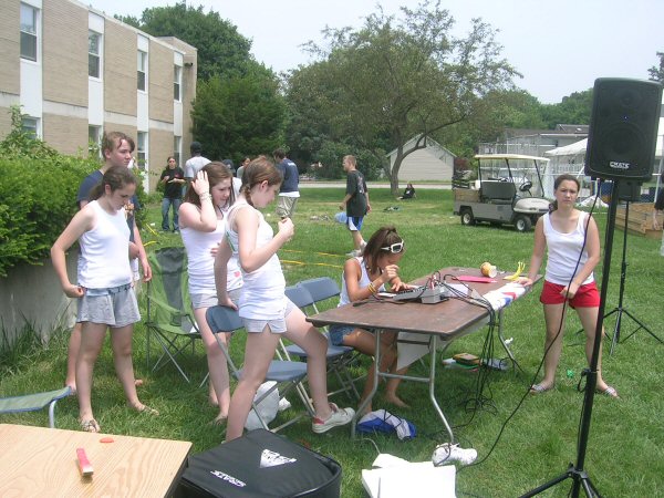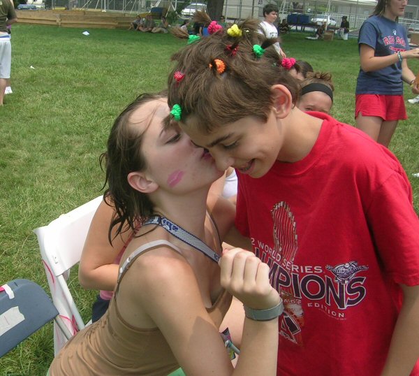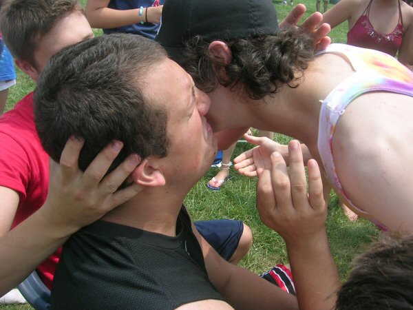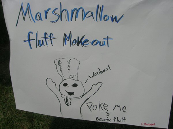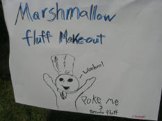 the Marshmallow Fluff make out booth, contestants lined up on either side of