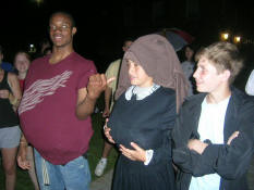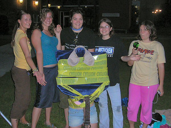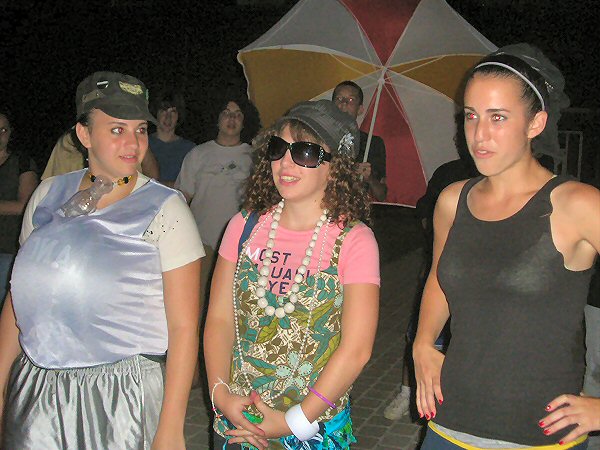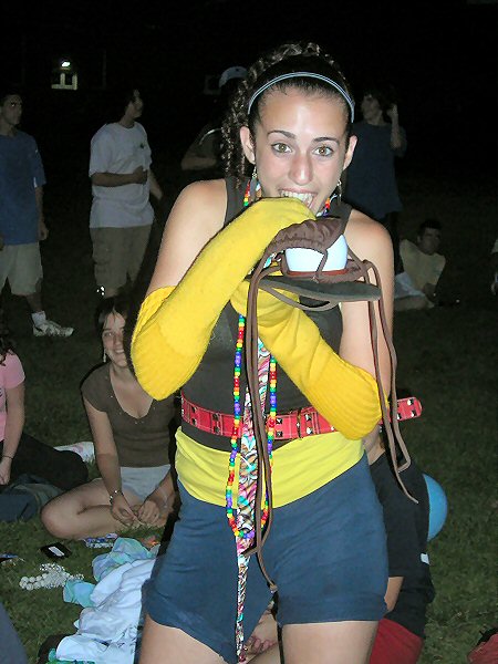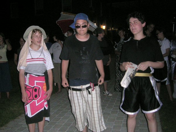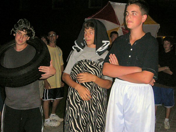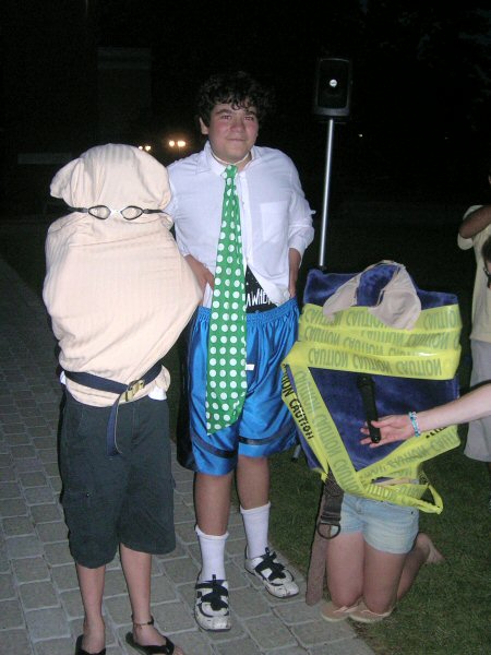 Each group, after hearing what they were about to do, went back to their dorm, and returned with a pillowcase full of clothes, accessories, and whatever other props might be needed to portray (including the return of The Tire) as accurately as possible the celebrity, be they real people, or fictional or cartoon characters. |
