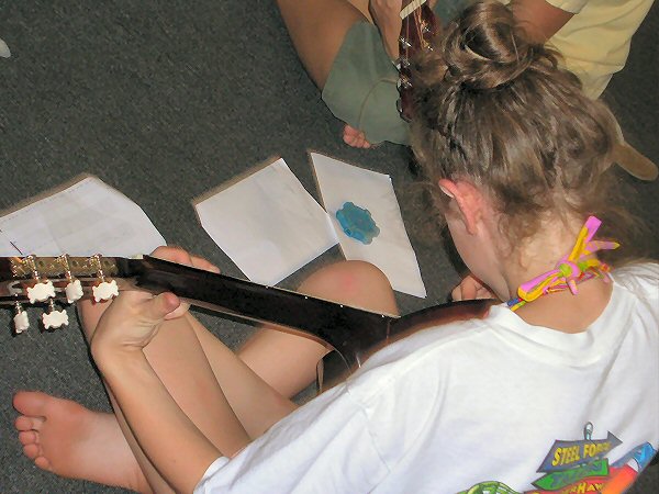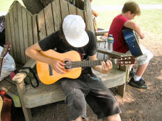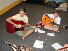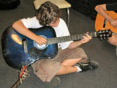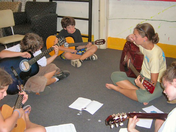 Camp is different from school in many ways. Camp encourages kids to express themselves, to let loose, and to have fun. But here at Campus Kids, one thing remains a constant all year round - the yearning to learn. And although we cannot satisfy a thirst for algebra, or a desire for astro-physics, we do have a developed music program. Along with drums, a popular activity is guitar. |