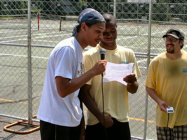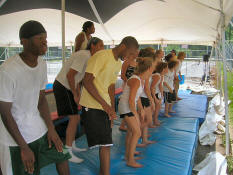 Jay (seen) and Floyd and Jessica welcomed campers to this year's gymnastics