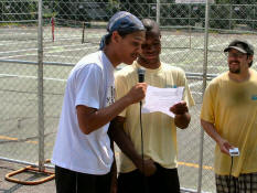 the tennis courts is a tent. Each morning, Staff Assistants take down