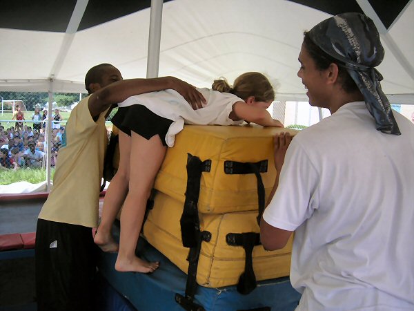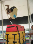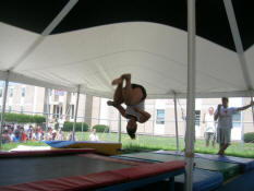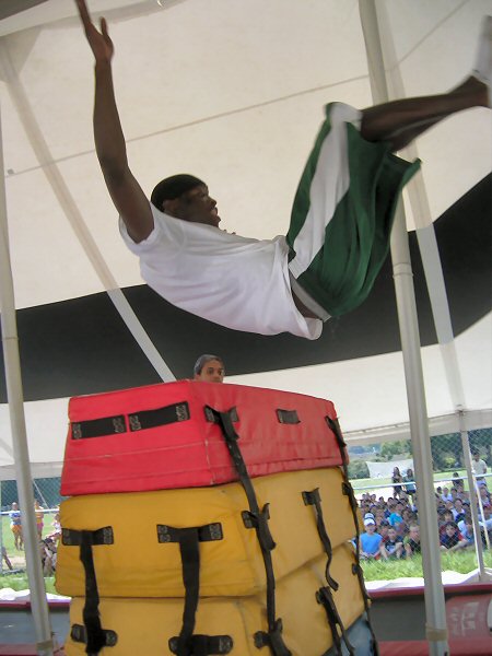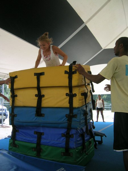 had to propel themselves off of a trampoline, and try to get over a mounting
