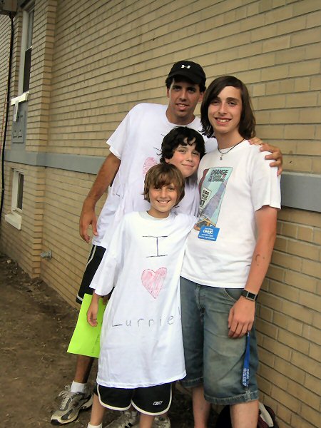 Ryan Belline, along with Mitch and Ben, in a shirt that read "I ♥ Lurrie" took the microphone. | |