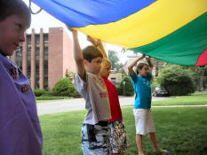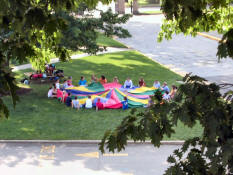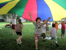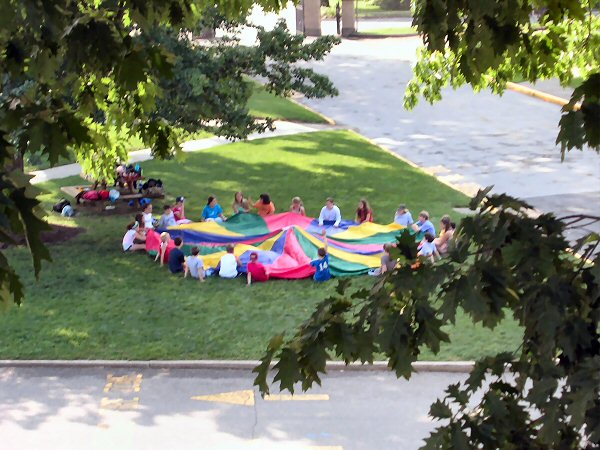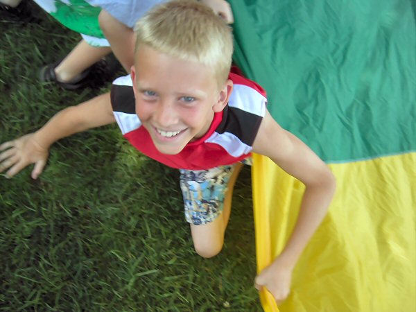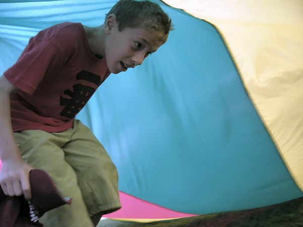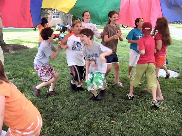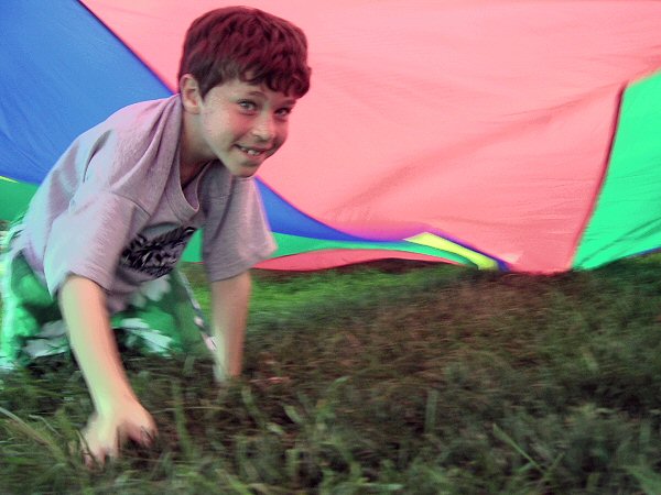 campers, playing mice, scurry under, and try to avoid being tagged by the