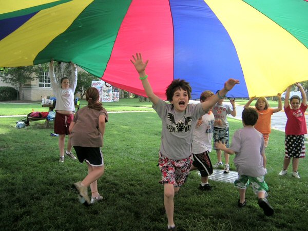 skeptical of a game entitled "Parachute Games", but after they try it,