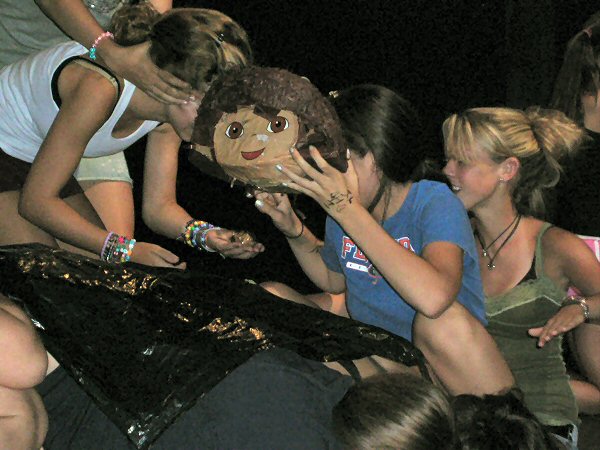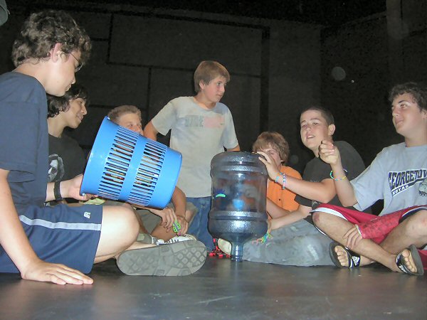 For an evening activity, bunk groups were told to put random items into a bag or pillowcase, not knowing what it would be used for (we once again saw the return of the tire.) |
