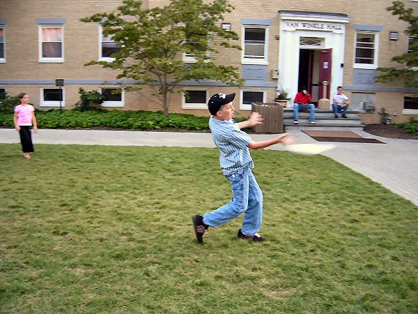 Frisbees could be seen whizzing from one side of the quad to the next.