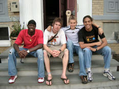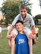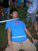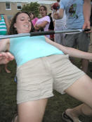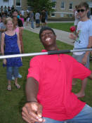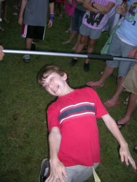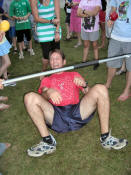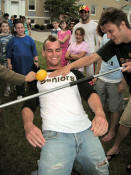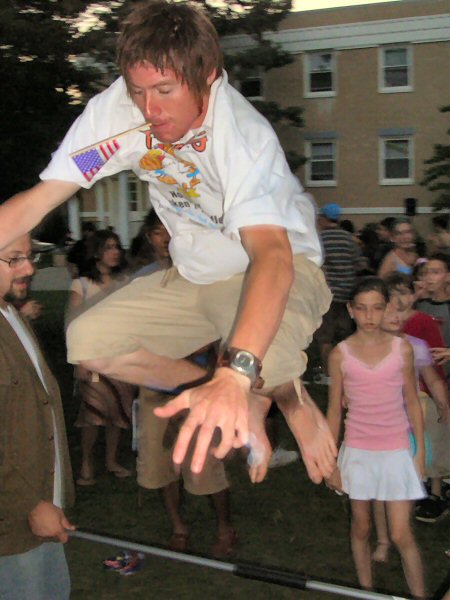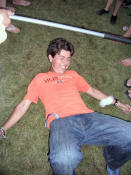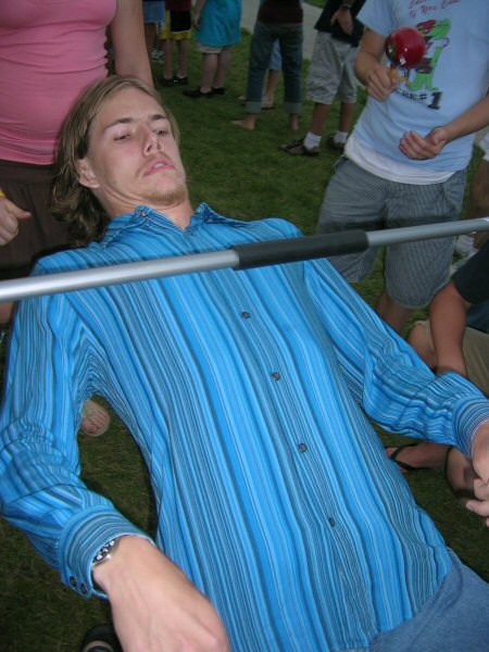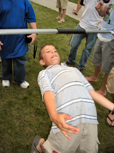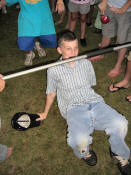 broom, the handle was held at the waist of Jeremy and Paul, maracas shaking,