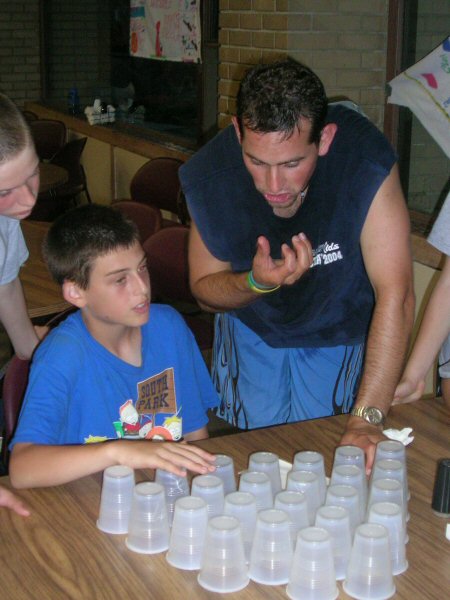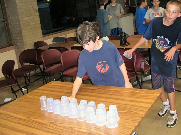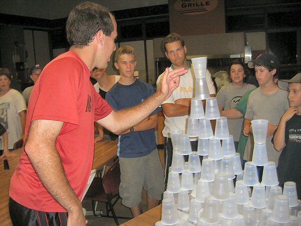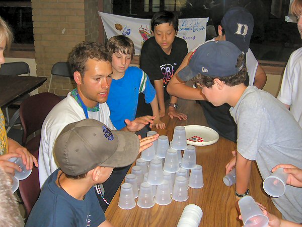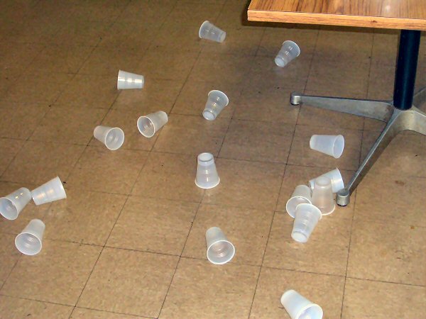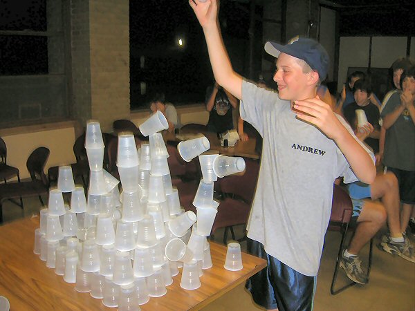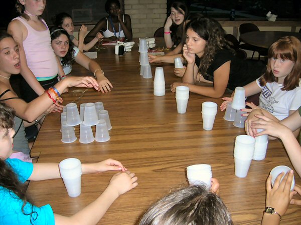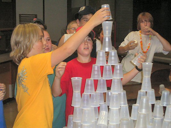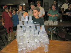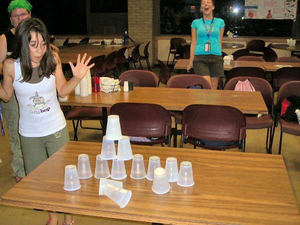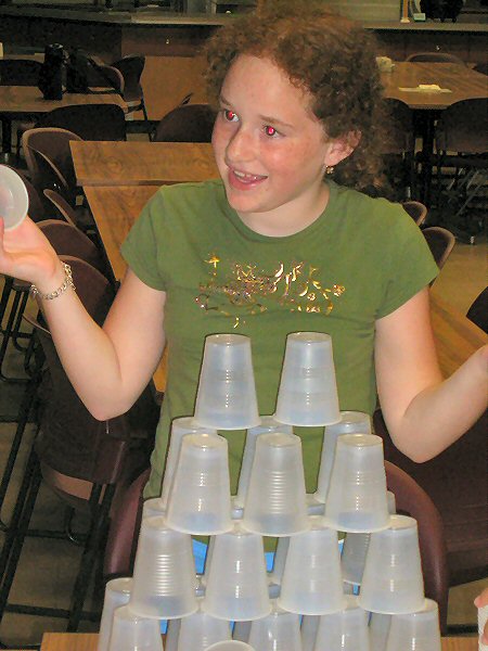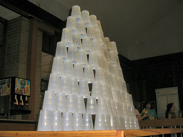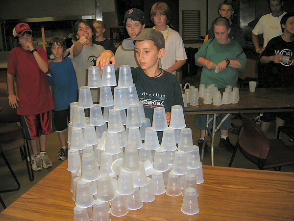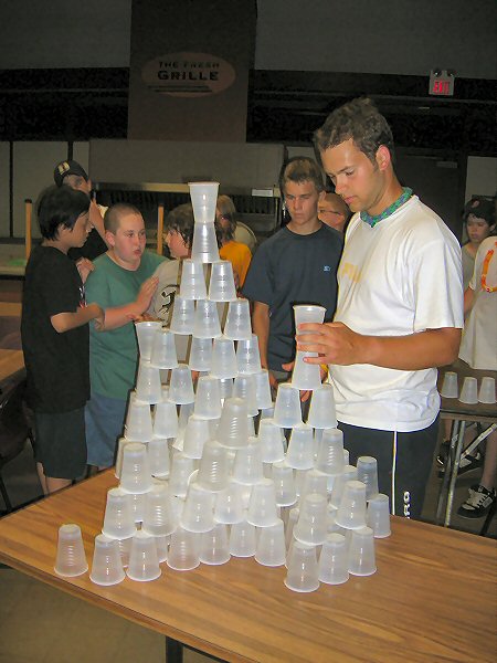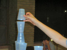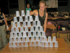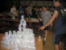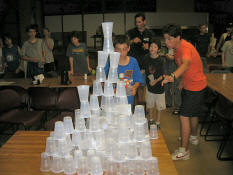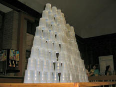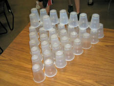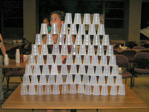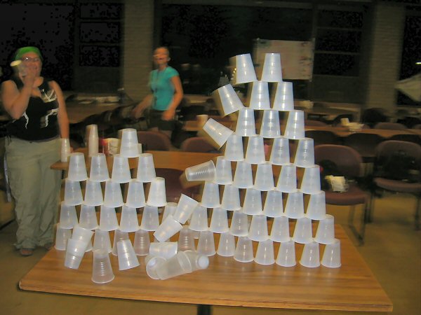 given 150 plastic cups (recycled from other games) and five minutes to plan.