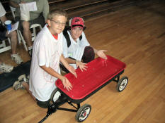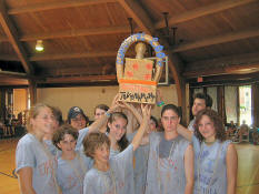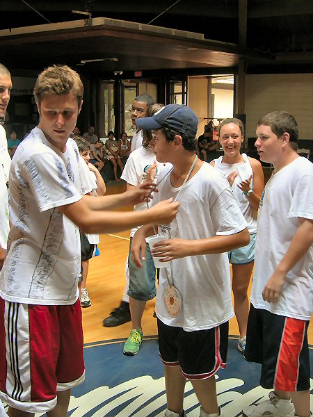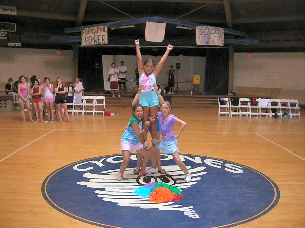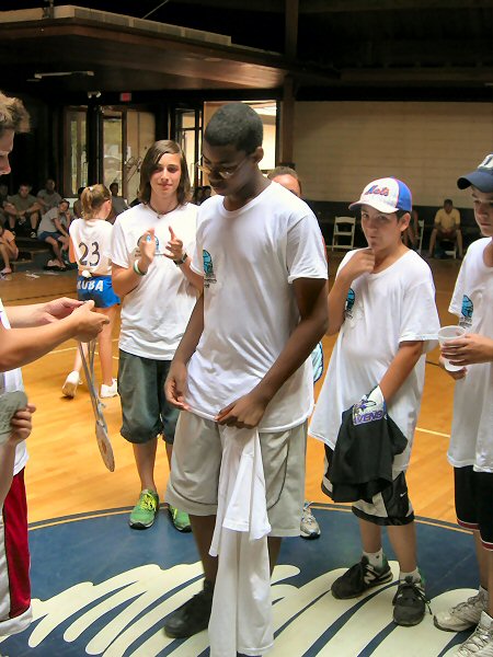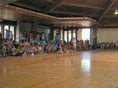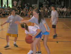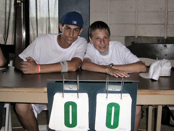 After a fabulous rendition of the national anthem by camper Marlena H. (whose picture we do not have due to web photo complications) the game began. |
