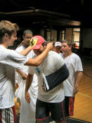 Teams had a quick pep-talk before the game. |