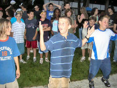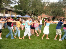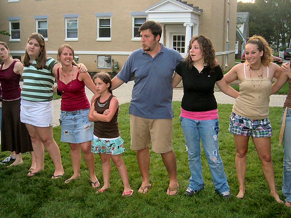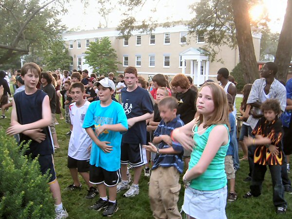 that a giant circle is formed. Campers and counselors alike lock arms,