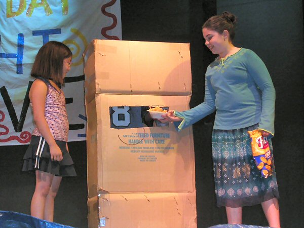 acts, as the stage crew set up behind the curtain, inanimate objects