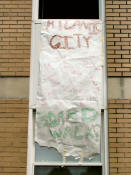 Each side, too, had a banner hanging from an Anderson window. |