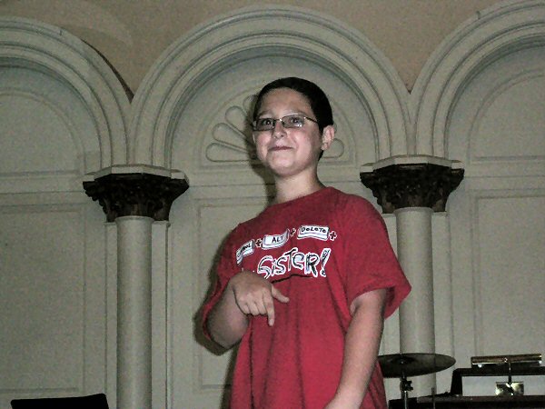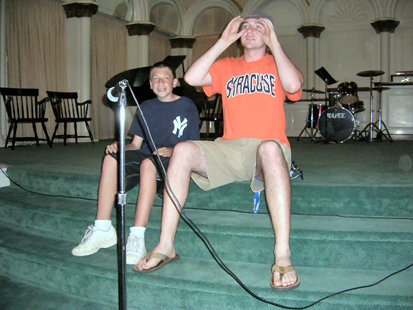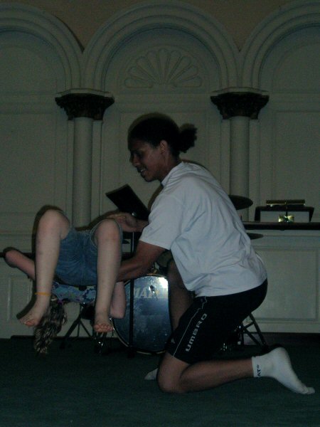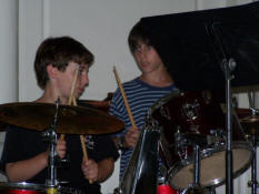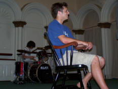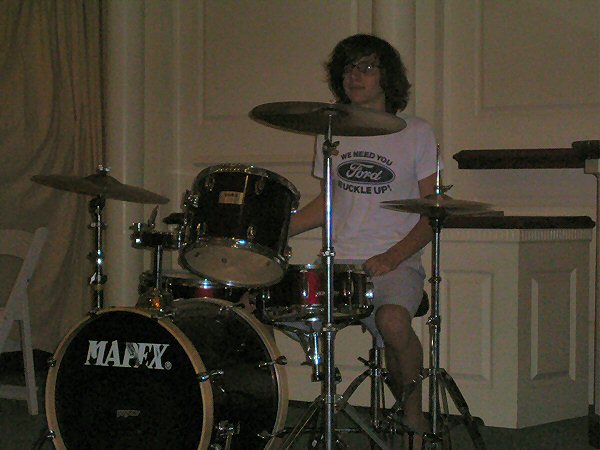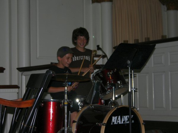Jeremy B. and Ben B. with a drum skit. Jeremy, a terrible drummer