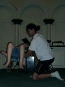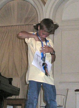 Sports Coordinator, walked up to the stage and sat in the chair designated