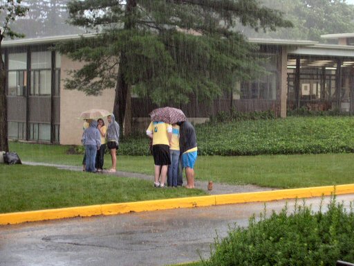 waited patiently in the downpour in order to give those campers a proper