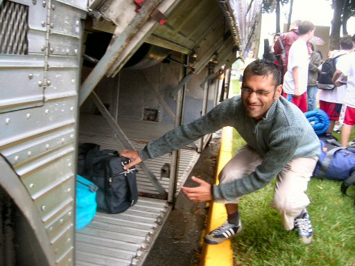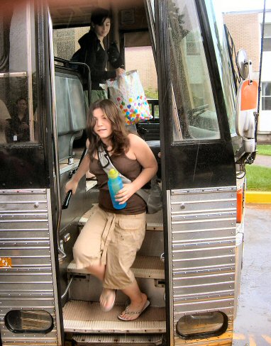 help of a few counselors getting all the luggage from under the bus in